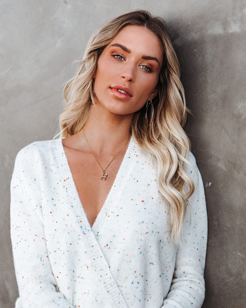 Represent your initial in the cutest way with our Bamboo Initial Pendant Necklace! This shining gold necklace has a long curb chain and a bamboo initial pendant with a lobster clasp closure. Styled with the Perfect Hoop Earrings and Celebrate Good Times Knit Drape Sweater.